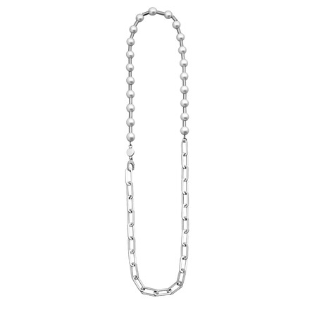 Effective combination: striking link necklace made of skin-friendly stainless steel and high-quality artificial pearls with a shimmering pearl sheen. The 60 cm long necklace with integrated neodymium magnets, can be combined in many ways thanks to the 2 sturdy spring rings - solo, with a centre element or as an expressive bracelet.